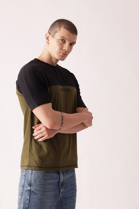 Starton Apparel Crew Neck Olive Black Placket T-Shirt Men (STM-003)