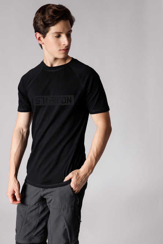 Starton Apparel Trending Smart Slim Fit Cotton Black Raglan T Shirt Men's Regular Fit Round Neck Half Sleeved T-Shirt (STM-006)