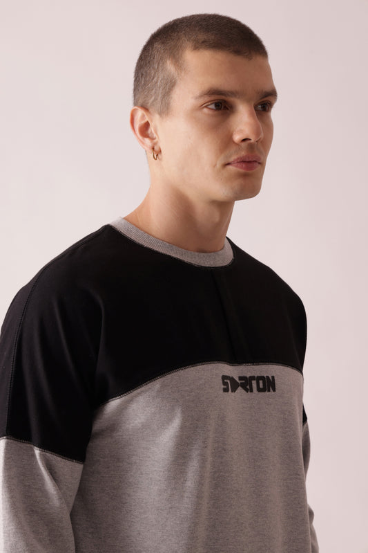 Starton Apparel Pure Cotton Terry 280GSM Black Grey Placket Oversized Sweatshirt