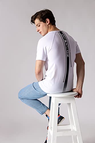 STARTON Men's Round Neck Short Sleeve T-Shirt Vertical Back Print(STM-005)