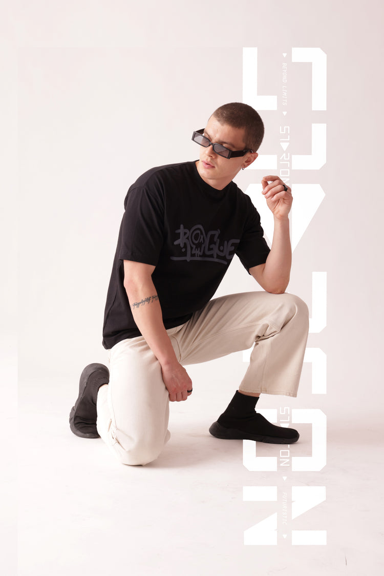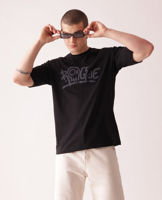 Starton Apparel Cotton Drop Shoulder Oversized T-Shirt ROGUE Front Back Printed