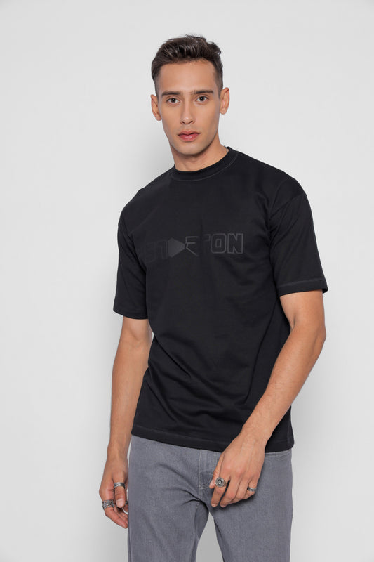 Starton Apparel 100% Cotton Oversize Loose Fit Drop Shoulder Half Sleeve T-Shirt for Men (STM-035 Black)