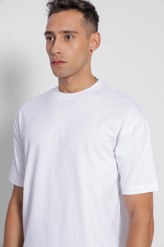Starton Apparel Pre Combed Cotton Oversize Loose Fit Drop Shoulder Half Sleeve Men Heavy Weight 220 GSM (STM-031 White)