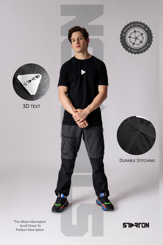 Starton Apparel Men's Round Neck Raglan Sleeve T-Shirt Combed Cotton Black White 3D Print (STM-001)